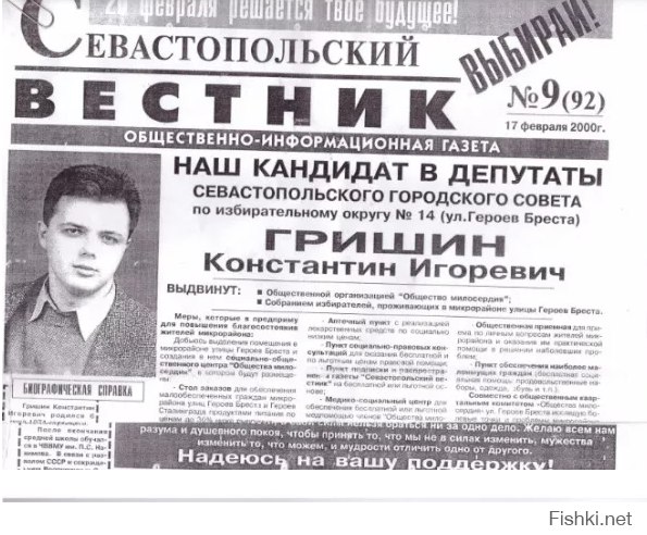 Более того , в Севастополе Костя Гришин был активным борцом за укрепление этой власти, помогал госадминистрации фальсифицировать процедуру референдума 2000 года.